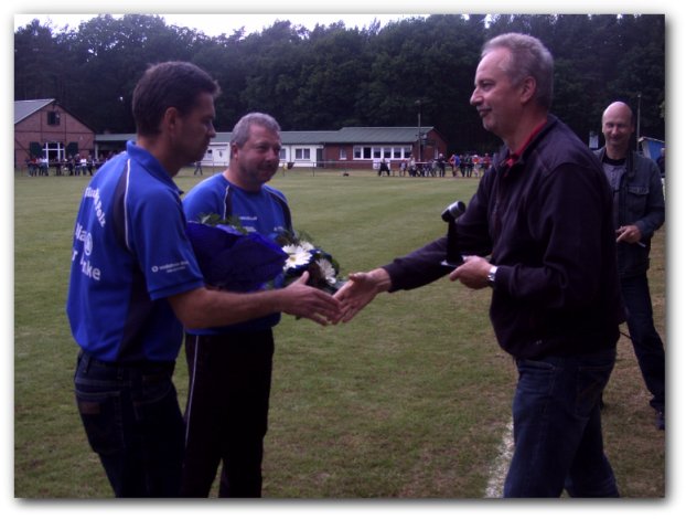 Heiner Richter und Mannschaftskapitän Julian Jesse, mit Torwart