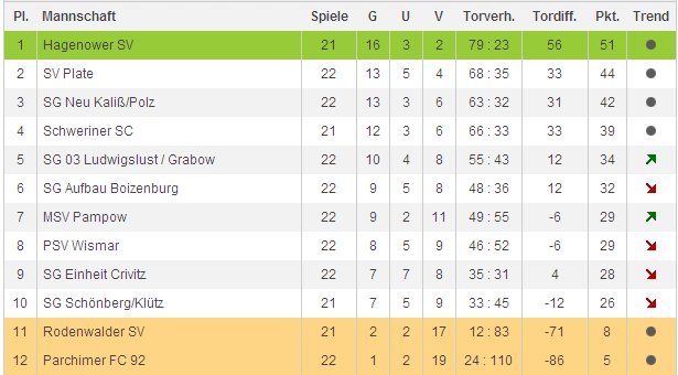 Hagenower SV. Die andere "Niederlage" setzte es am grünen